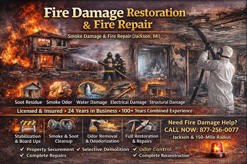 Common issues include soot residue, smoke odor in porous materials, water damage from suppression, compromised electrical/insulation/framing/finishes, and hidden damage behind walls or above ceilings. We provide stabilization and board ups when needed, selective demolition of unsalvageable materials, smoke/soot cleanup and odor control as appropriate to conditions, and complete repairs and reconstruction to restore pre-loss condition.